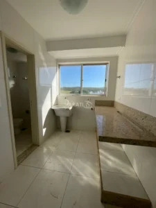 Um apartamento contendo 03 quartos sendo 01 suíte todos com armários planejados, sala com armário, banheiro social, cozinha com armários planejados com piso em porcelanato, área de serviço, dispensa, sacada no quarto suíte e na sala com luz solar nascente, piso , forro em laje e garagem para 01 carro. Condômino oferece portaria 24h, sala de festa; + taxa de condomínio.