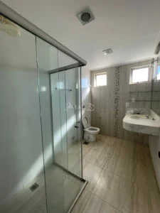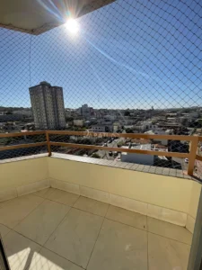 Um apartamento contendo 03 quartos sendo 01 suíte todos com armários planejados, sala com armário, banheiro social, cozinha com armários planejados com piso em porcelanato, área de serviço, dispensa, sacada no quarto suíte e na sala com luz solar nascente, piso , forro em laje e garagem para 01 carro. Condômino oferece portaria 24h, sala de festa; + taxa de condomínio.